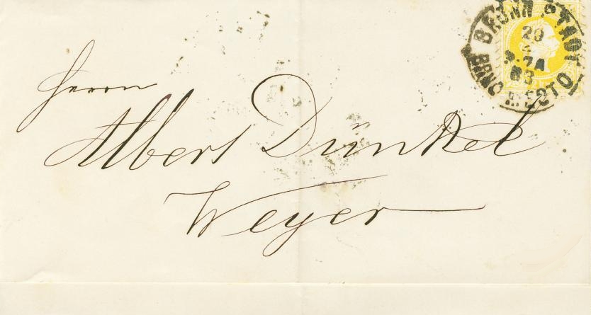 Brief vom 29. April 1883 (?) Briefmarke ÖSTERREICH MiNr. 39 von 1867 mit Franz Josef I